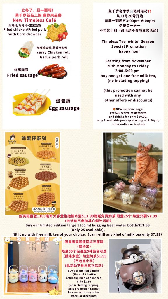 (Black milk tea, Four Seasons green Milk Tea, Matcha Milk Tea, Strawberry Milk Tea、taro milk tea)